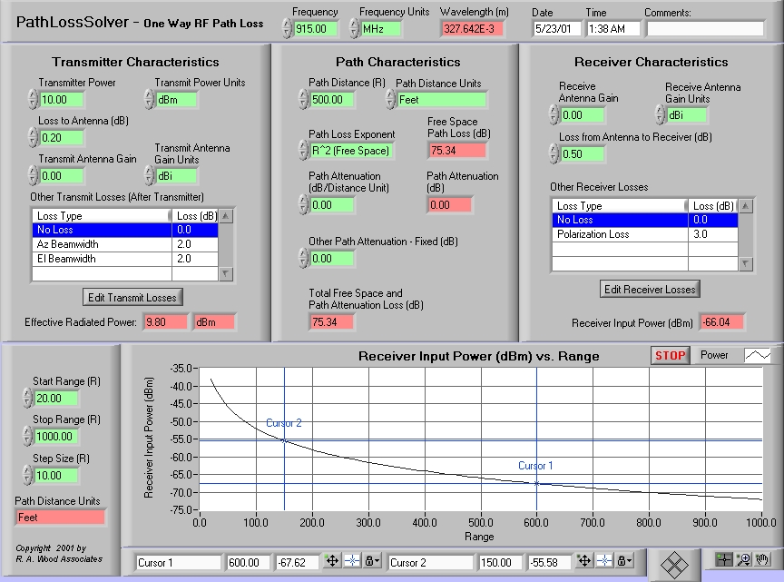 - Antenna gains, transmitter losses and receiver losses can be incorporated into the calculations.